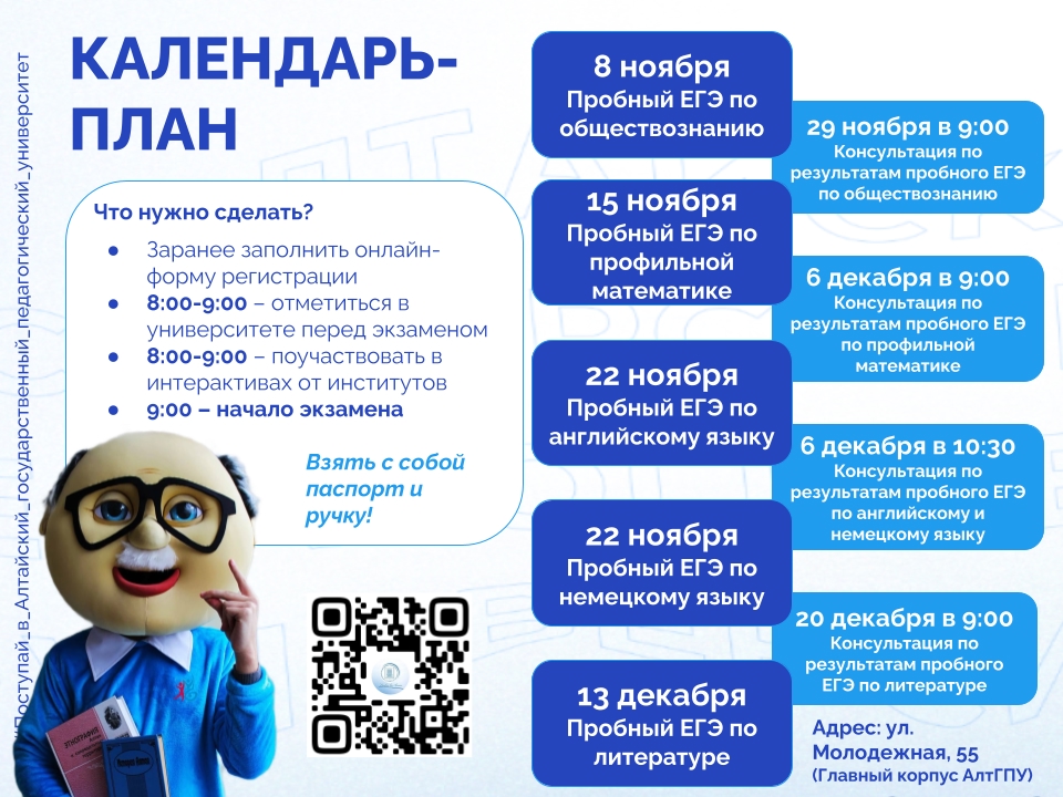 Ежегодно с ноября в педагогическом университете начинаются бесплатные пробные тестирования в формате ЕГЭ. По результатам каждого экзамена будет также проведена консультация по разбору ошибок.