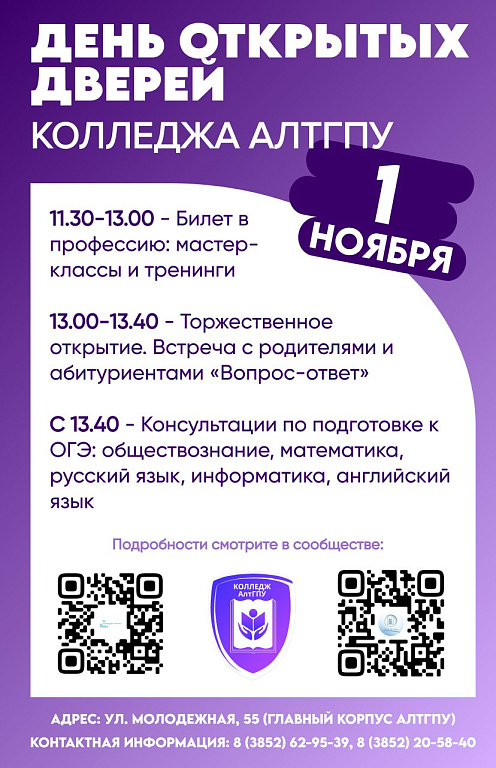 ДЕНЬ ОТКРЫТЫХ ДВЕРЕЙ КОЛЛЕДЖА АЛТГПУ