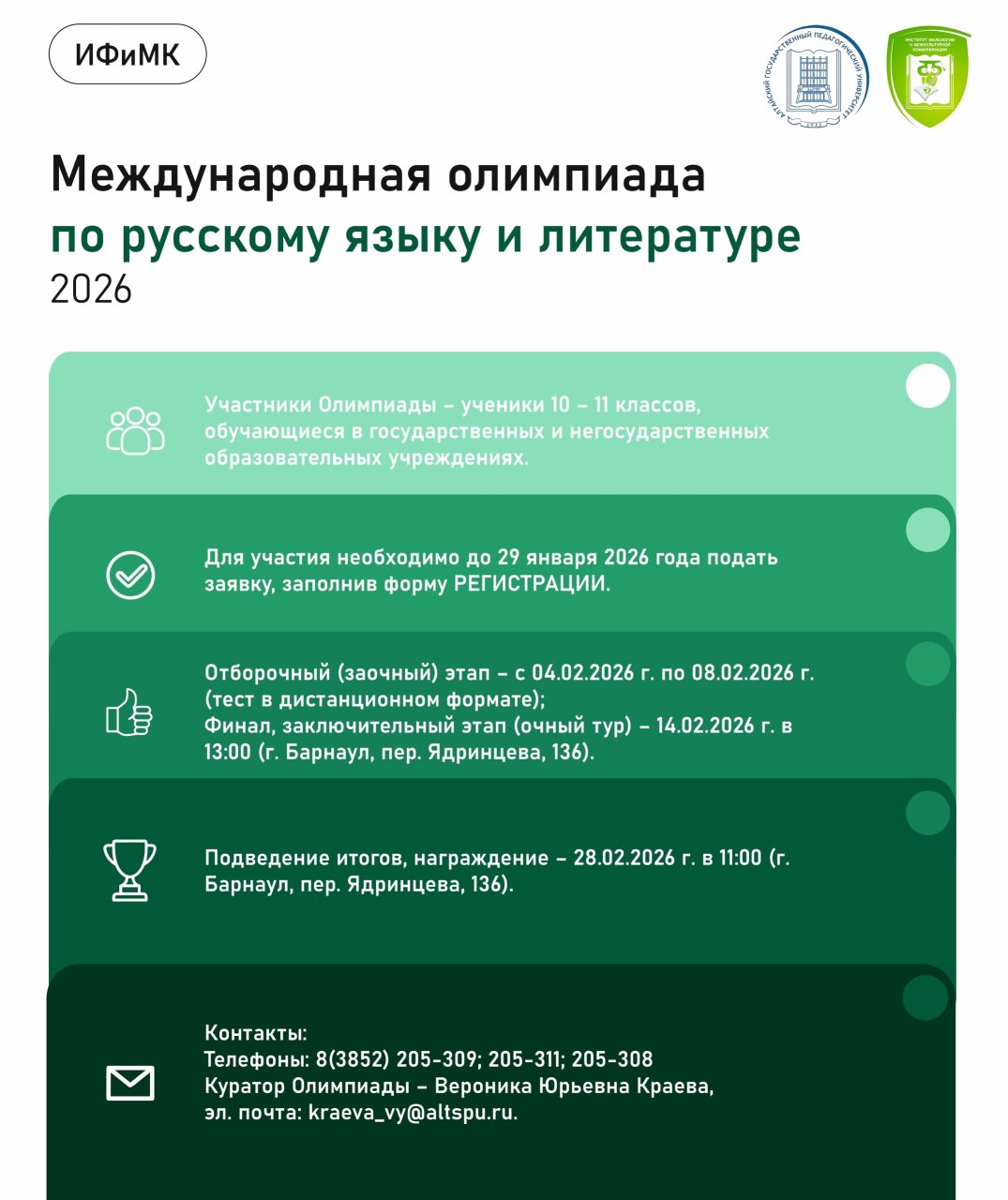 Для участия в олимпиаде необходимо зарегистрироваться с 22.12.2025 г. по 01.02.2026 г. Ссылка для регистрации: https://forms.yandex.ru/u/675f9745493639e4ddf69f3c/