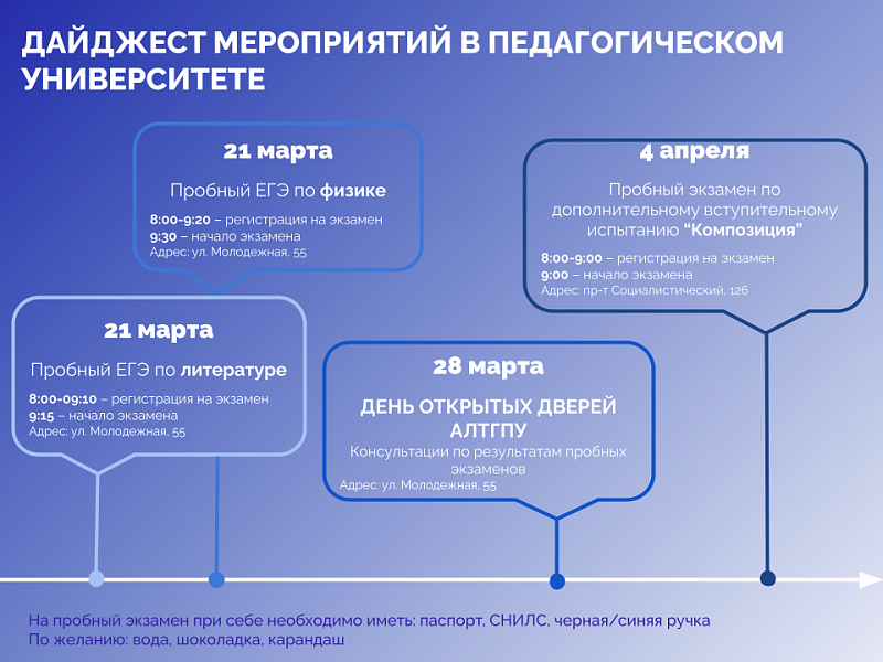 В педагогическом университете в ближайшее время состоится ряд мероприятий для школьников и абитуриентов. Для участия в данных мероприятий регистрация обязательна