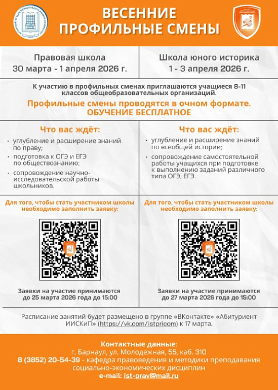 Институт истории, социальных коммуникаций и права начинает регистрацию на традиционные весенние профильные смены «Правовая школа» и «Школа юного историка»!